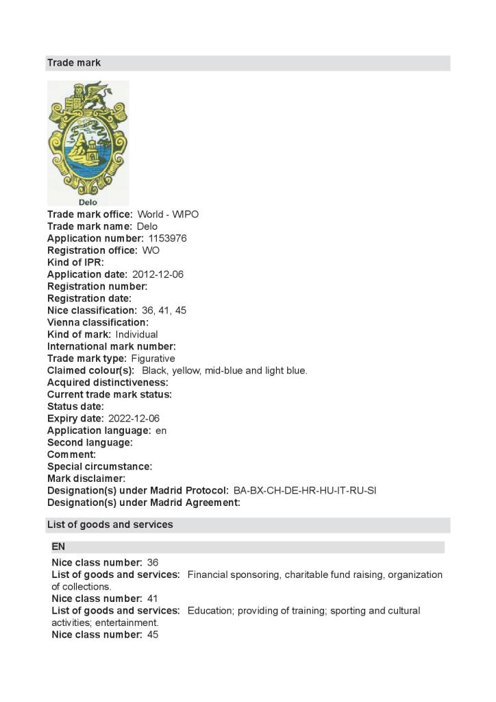 Um die Rechtssituation möglichst umfassend zu gewährleisten, wurde die Marke „Delo“ und das Wappen auch in weiteren Staaten Europas geschützt.